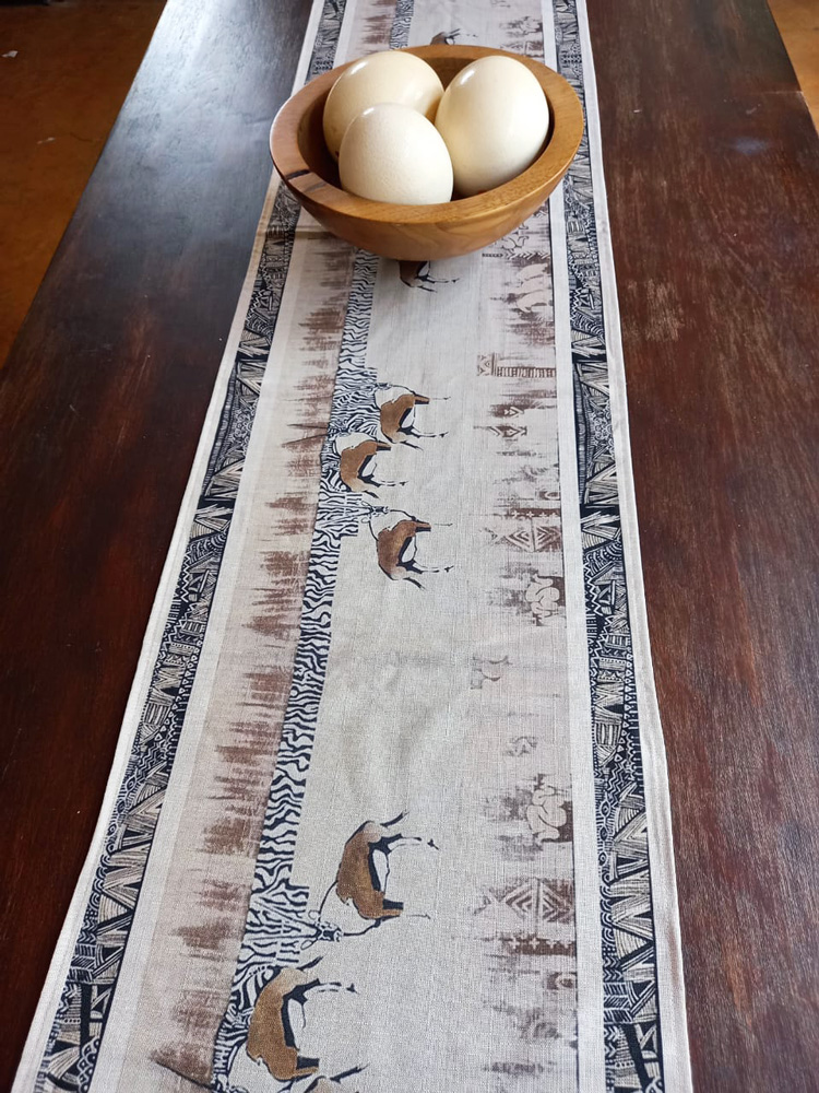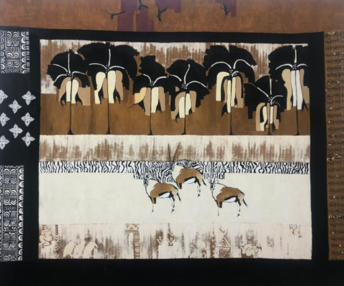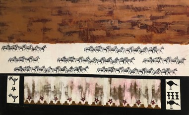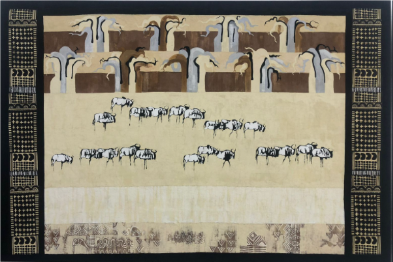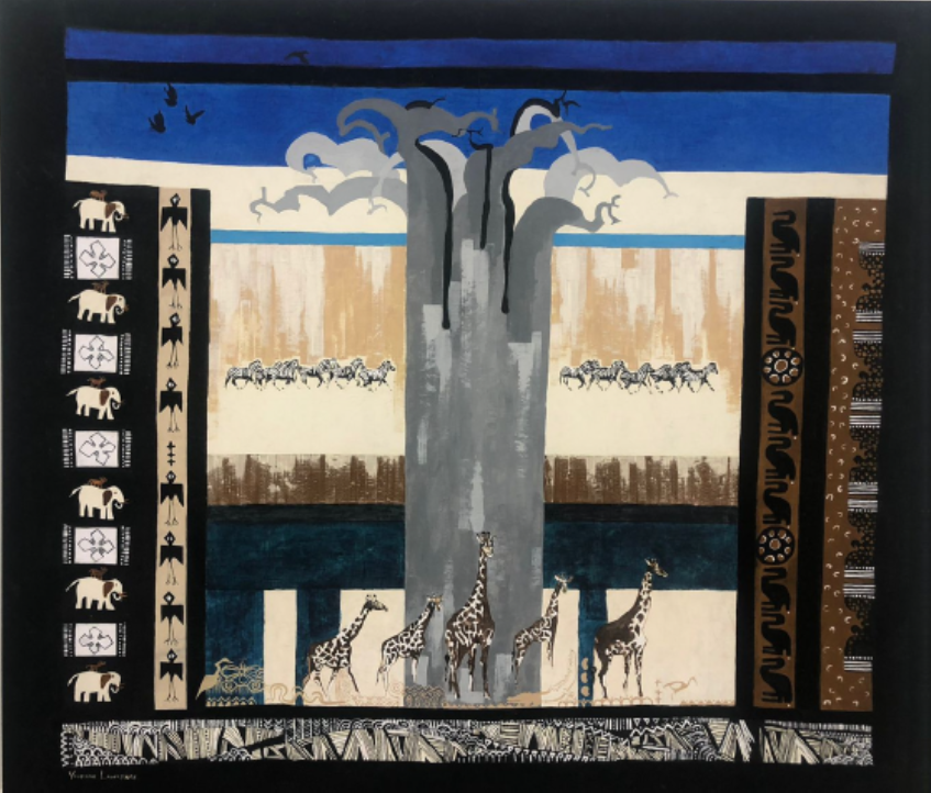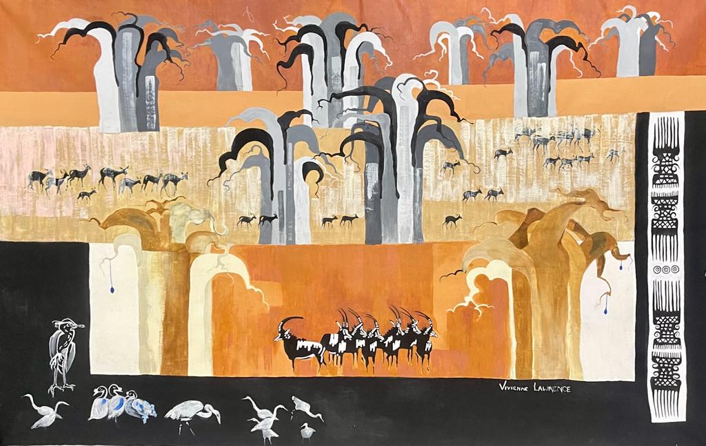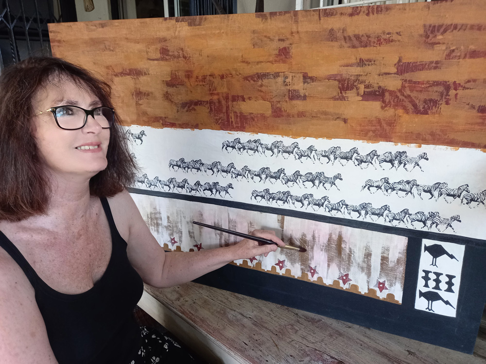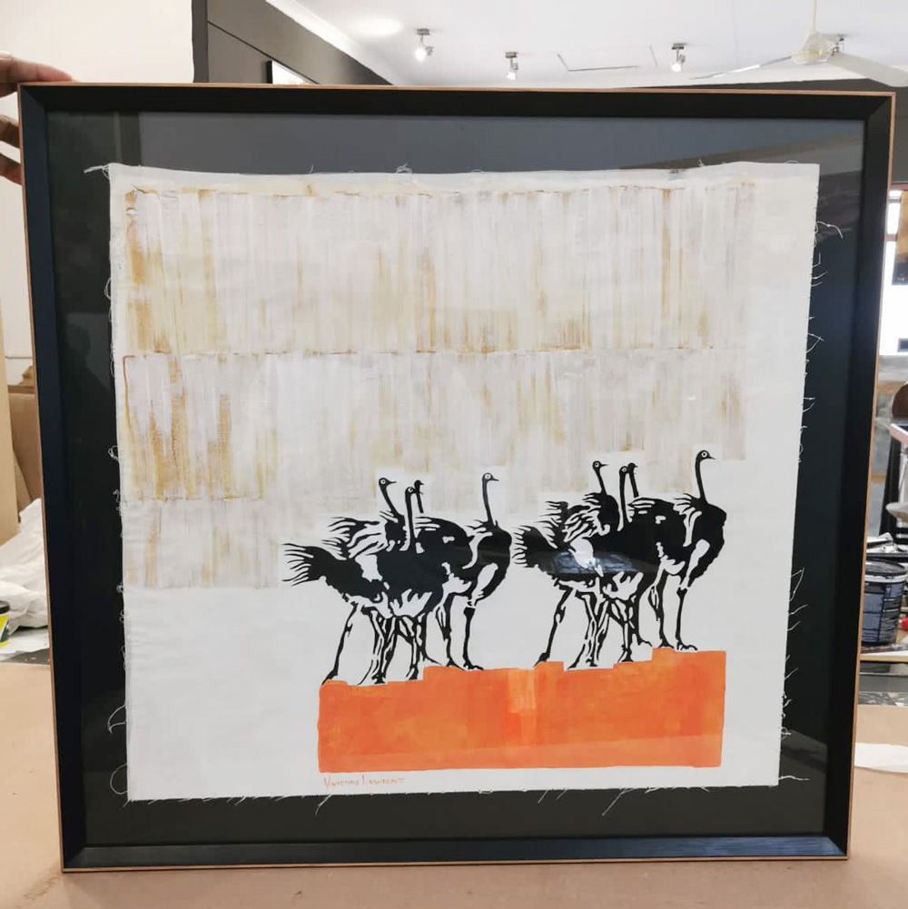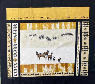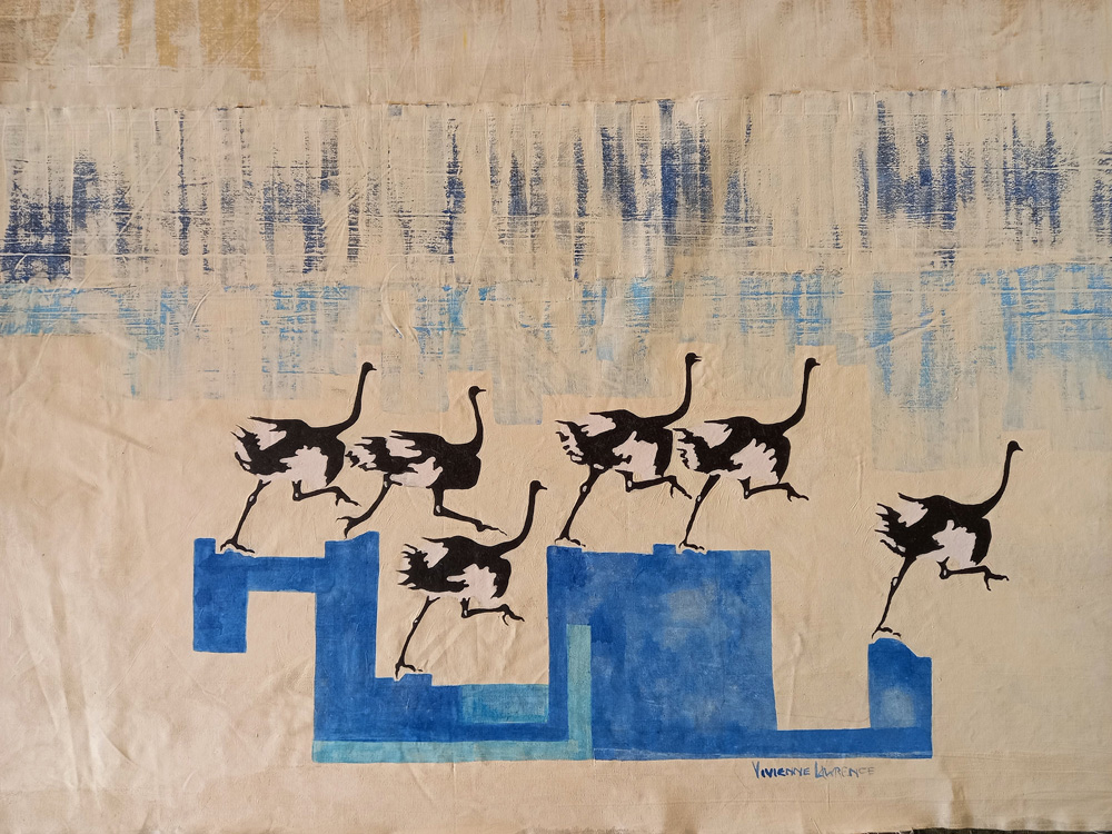 Vivienne currently produces impressive silkscreen works worthy of the finest hotels, game lodges, business premises and private residences. These works, with central animals, are bordered with intricate and symbolic ethnic symbols telling tales and giving context to the central elements.